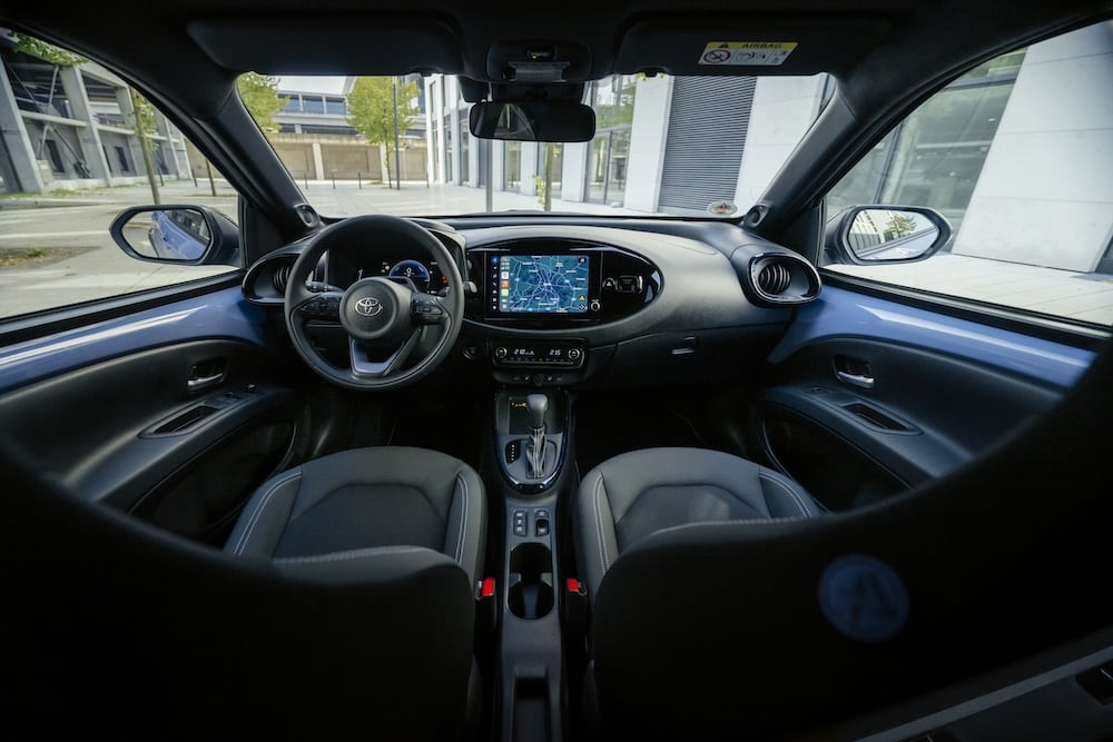 Eine Toyota Premiere ist die Anordnung der beiden Batteriezellen-Stacks: Während Toyota bei anderen Hybridfahrzeugen normalerweise ein paralleles Layout nutzt, die mehr Längsraum erfordert, sind die Batterien beim Aygo X längs nebeneinander unter den Rücksitzen über die gesamte Fahrzeugbreite angeordnet.