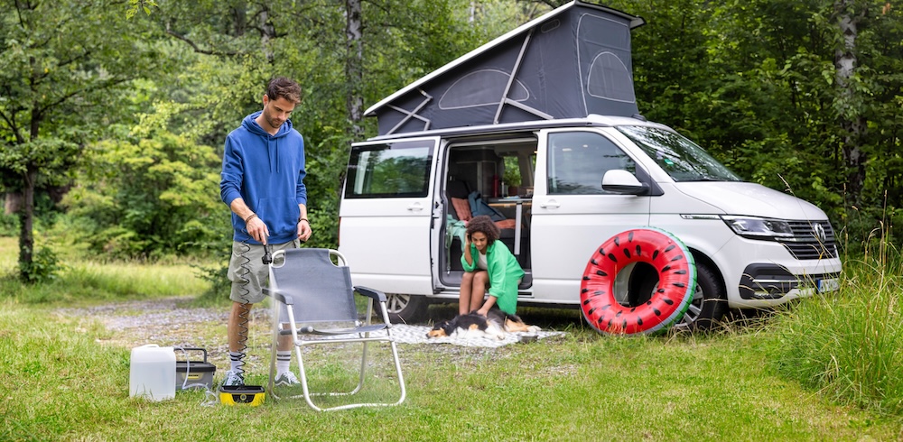 Nach einem ausgedehnten Urlaub ist eine gründliche Innenreinigung des Wohnmobils oder Campers unumgänglich. Doch nicht nur der Innenbereich kann mit Hand- und Waschsaugern auf Vordermann gebracht werden. Ebenso wichtig ist die Pflege der Camping-Fahrzeuge von außen. Akku-Mitteldruckreiniger wie der OC 6-18 von Kärcher arbeiten mit einem Wasserdruck von 20 bis 30 bar. Angeschlossen an einen Außenwasserhahn oder an Gartenschläuche, lassen sich verschiedenste Gegenstände effektiv und schonend reinigen – egal ob stark verschmutzte Fahrräder, Camping- oder Gartenmöbel. Unter www.kaercher.de im Bereich „Home & Garden“ finden sich weitere nützliche Tipps.