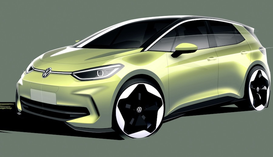 Designskizze: Der neue ID.3 kommt im Frühjahr mit geschärftem Außendesign.