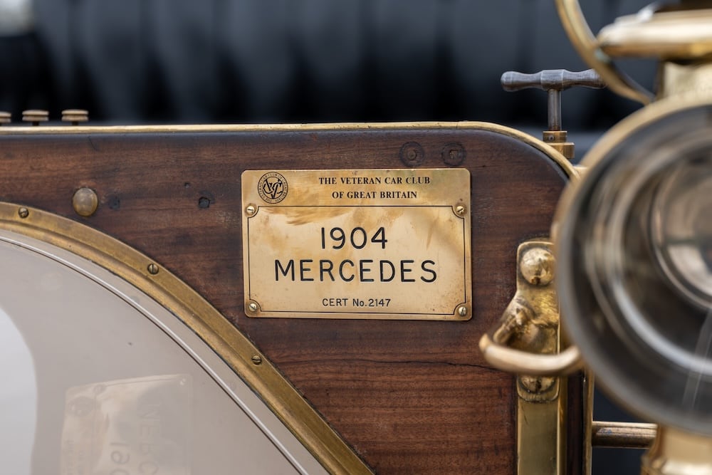 Mercedes-Simplex 28/32 PS von 1904. Zertifizierungplakette des Veteran Car Club of Great Britain. Foto vom Wochenende 1./2. November 2025 im Rahmen des RM Sotheby’s London to Brighton Veteran Car Run am 2. November 2025.