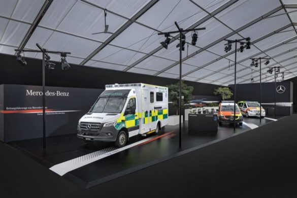 Diese Zusammenarbeit erstreckt sich sowohl auf die Basisfahrzeuge, als auch auf die Kooperation mit den jeweiligen Aufbauherstellern. Diese stellen nicht nur die entsprechenden Ausbaulösungen bereit, sondern müssen dabei auch die unterschiedlichen Standards im Rettungswesen der einzelnen Länder berücksichtigen. Auf dem Stand finden sich drei Exponate: Ein Sprinter Rettungswagen mit Kofferaufbau der Firma Wietmarscher Ambulanz- und Sonderfahrzeug GmbH, ein eVito Tourer als Notarzt-Einsatzfahrzeug, den die Firma Ambulanz Mobile ausgebaut hat, sowie – als Messepremiere – ein eCitan als Konzeptfahrzeug mit einem Ausbau für das Rettungswesen von CARS Technik und Logistik GmbH.